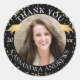 Graduation Photo Black Gold Glitter Thank You Classic Round Sticker
