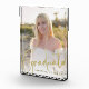 Display your graduate’s milestone with this minimalist gold script graduation photo block. Featuring a clean modern layout and elegant gold lettering, this freestanding photo keepsake beautifully showcases your graduate’s picture, name, and class year. Perfect for graduation party décor, home display, dorm room styling, or as a thoughtful gift for high school or college grads.