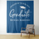 A modern classic blue photo booth backdrop tapestry for his or her graduation party. "Congrats To Our 2023 Graduate" is written in a mix of simple white typography and a large white script. Personalise with his or her name and class year in simple white typography. You can change the colours to your school colours by editing in the design tool.