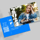 This design features a graduation graduate grad modern bright azure blue, with a QR code for the website, an online URL. with a photo simple minimalist minimal pictures, for high school or college seniors, a modern mortarboard mortar board tassel, with a graduate class of 2023 year, with creative stylish trendy typography style, for a graduation grad party invitations, a whimsical fun custom photo invite, a full bleed photo picture template, a modern style grad party invitations