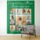 Add an elegant personalised touch to college or high school graduation party decorations with a custom photo collage backdrop. The pictures and all wording on this template are simple to personalise, and colours are easy to change with the Zazzle design tool. The green and white design features trendy handwritten script calligraphy, chic modern minimalist typography, and any favourite photos of your choice, such as senior pictures or images from the commencement ceremony. This large graduation party sign can be hung on a wall to welcome guests to the celebration or used as a fun and stylish photo booth backdrop. Congratulations to the graduate!