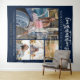 Graduation Photo Collage Navy Blue 2025 Backdrop Tapestry