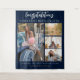 Photo collage gold script graduation party photo booth backdrop for the new grad. Features 4 photos of the graduate, and the word "Congratulations" is set. Add their name, school college, and class year of graduation by clicking the "Personalise" button.