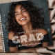 Graduation guest book featuring the graduate's name and year above and below the text "grad" in a fun, modern font as a white overlay over your custom photo.