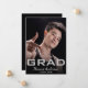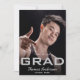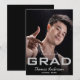 Personalise and add your own photo of the graduate. Black photo overlay. Add year and school name. With the word: Grad written with large block letters. Grey and white text.