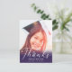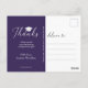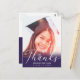Thank your family and friends for their graduation gifts and well wishes with this elegant custom photo postcard. This chic design template features your photo with an purple overlay at the bottom and a modern hand lettered white script which reads "Thanks" and your name, and class/year below. The back of the card has a thank you note and signature for your to personalize an a green background. Congratulations on your graduation! Designed by artist Susan Coffey.