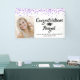 Purple confetti and CONGRATULATIONS (graduate's name) in a brush script font in black (the text colour can be changed to coordinate with your school colours or party theme decor). Honour and celebrate the graduate and welcome party guests with this banner sign featuring a photo of the graduate for a young man or woman. Personalise it with their name, school and graduation year or whatever text you desire.