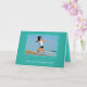 Graduation thank-you card with photo template on the front. Customize text in two places on teal, blue-green cards with modern line frame around the photo. Inside color is bright aqua blue with black printed text for you to personalize with a thank-you message. This card also comes in a smaller size.