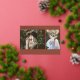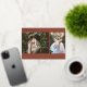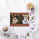 Line art "graduation" foil script at bottom centre with your custom text around top left corner. Personalise with your own 2 photos. Terracotta background.