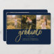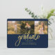 Graduation 4 Photo Collage Script Navy Blue Gold Announcement for class of 2025. Easily customise this by changing the text and replacing the photos with yours. A modern and trendier way to announce your graduation this year!