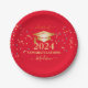 Graduation Pink Girls Confetti Golden initial Paper Plate