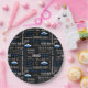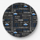 Party paper plates shown with a celebration of grad caps and messages print.