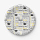 Party paper plates shown with a celebration of grad caps and messages print.