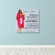 A custom graduation photo canvas featuring certain qualities of a great woman include: