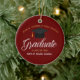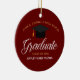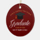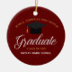 This burgundy red and gold custom senior graduation Christmas ornament gift features chic white and gold typography under a high school or college name for the class of 2025. Customise with your graduating year under the lovely calligraphy for a great personalised graduate present.