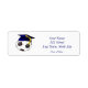 These return address labels are perfect for using on your commencement announcements. They feature a blue graduation cap on a black and white soccer ball. All text is customisable.