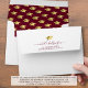 Personalised modern graduation stationery envelopes featuring a faux metallic gold graduation cap pattern on a maroon background inside and preprinted with your graduate's return address in maroon and accented with a faux metallic gold graduation cap to coordinate with your graduate's invitation, announcement or thank you card. The sample shows a chic fancy script typography for the name you can change to another font style as desired. Make changes in EDIT. ASSISTANCE: For help with design modification or personalisation, colour change, resizing, transferring the design to another product or if you would like coordinating items, contact the designer BEFORE ORDERING via the Zazzle Chat MESSAGE tab or email makeitaboutyoustore@gmail.com.