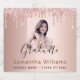 For the graduation party. A feminine and girly rose gold, pink background decorated with faux glitter drips, paint dripping look. Personalise and add her photo, name and school name, year.