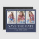 Graduation Save Date 4 Photo Navy Blue White Magnetic Invitation