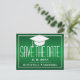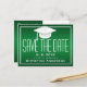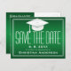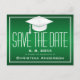 Graduation Save the Date Chic Green White Grad Cap Announcement Postcard