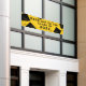Creative graduation congratulations banner for grad party or school event featuring black graduation caps on a yellow gold background. Edit text to change senior class year.