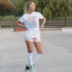 Kiwis wear all black as the t shirt is with Green lettering to match the environment and yellow for joy and purple thistle to match my hair.