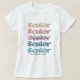 Retro and stylish grad class of 2025 t-shirt. Design features "Senior" repeating design in colourful muted rainbow colours. Personalise with graduate year and grad's name. A fun gift for the grad. Design by ABDesignLoft.