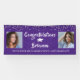 Silver confetti and editable title CONGRATULATIONS (graduate's name) in a handwritten brush script font in white against an editable purple background that you can change to coordinate with school or party theme colours by clicking on the CUSTOMIZE FURTHER tab. PHOTO TIP: For fastest/best results, choose a photo with the subject in the middle and/or pre-crop it to a similar shape as shown BEFORE uploading and it will fill the photo space perfectly. Contact the designer if you'd like this design modified, on another product or desire complementary items for your event.