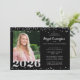 Announce your child's graduation and invite guests to a graduation party with this card featuring silver confetti and a silver glitter 2020 against an editable black background you can easily change to a coordinate with your school or party theme colours. There's two photos (one of the front and a full-bleed one on the back).