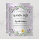 A modern, stylish graduation party invitation. A faux silver looking background with violet faux glitter, sparkles, lavender florals, flowers and eucalyptus greenery. Personalise and add the name and party details.