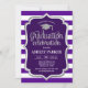 Graduation - Silver Purple White Stripes Invitation