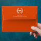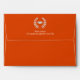 This design features graduation graduate grad party, a classic elegant laureate laurel leaves, a basic 5x7 a7 envelope size, a basic orange simple minimalist minimal, a traditional mortarboard mortar board, a return address back flap printed, a plain clean simplistic minimalist, a graduation party invitation envelope, a graduation announcement envelope, a plain orange grad party envelope