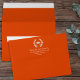 This design features a graduation graduate grad simple, with modern classic elegant traditional, classic laureate laurel leaves, a modern mortarboard mortar board cap, a 5x7 a7 envelope size, a return address printed back flap, a grad party invitation envelope, a graduation announcement envelope, with school colours bright orange theme, a graduation grad party matching envelopes