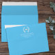 This design features a graduation graduate grad simple, with modern classic elegant traditional, classic laureate laurel leaves, a modern mortarboard mortar board cap, a 5x7 a7 envelope size, a return address printed back flap, a grad party invitation envelope, a graduation announcement envelope, with school colours Carolina blue theme, a graduation grad party matching envelopes