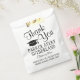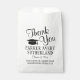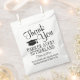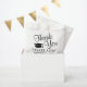 Add an elegant personalised touch to college or high school graduation thank you cards and party favours with black and white "thank you" favour bags. All text is simple to customise. Design features a white background, black mortar board cap, and modern calligraphy style script typography. Congratulations to the graduate!