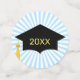Elegant graduation cap and glittering stars on light blue and white Table Confetti. Text ready to be personalised. Ideal for graduations! Shine like a star!