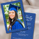 Celebrate your graduate’s big achievement with this stylish graduation party invitation featuring a bold blue background and a modern photo layout. The design highlights a full-size graduate photo on the front with elegant script and clean typography for event details. Perfect for announcing a graduation celebration, open house, or backyard party with family and friends. This customizable invitation allows you to add your graduate’s photo and party information to create a memorable keepsake for this special milestone.