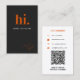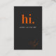 Make a bold first impression with this modern and minimalist business card, designed for graduates, students, and aspiring professionals entering the workforce. Featuring a sleek black background, a warm burnt orange "hi." statement, and a signature-style name detail, this card is perfect for networking, job interviews, career fairs, and professional events.