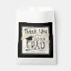 Modern personalised graduation THANK YOU party favour bags featuring a black and gold hand lettered brush calligraphy typography title design THANK YOU FROM THE CLASS YEAR GRAD accented with a graduation cap or mortarboard against an editable black background colour you can change to a school colour or coordinating party theme colour by clicking on EDIT USING DESIGN TOOL in the PERSONALIZE section. ASSISTANCE: For help with design modification/personalisation, colour change, transferring the design to another product or if you would like coordinating items, contact the designer BEFORE ORDERING via the Zazzle Chat MESSAGE tab or email at makeitaboutyoustore@gmail.com.