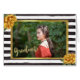 Graduation Thank You Card with photo, black and white watercolor stripes and gold roses