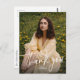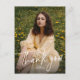 This stylish and modern graduation thank you postcard features a large photo on the front with the words thank you along with custom text. The back of this graduate thank you features room for a second photo and a custom thank-you message. The back can also be left blank to allow for a hand-written personalized thank you note. This simple graduation postcard is great for high school graduates or college graduates. Coordinating graduation announcements and graduation party invitations are available in the collection by Lea Delaveris Design.