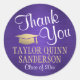 Graduation Thank You Script Brushed Purple & Gold Classic Round Sticker