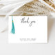 Simple graduation theme thank you card with blank space to write hand written messages in the middle. There is an illustration of a teal tassel on the side.