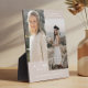 Celebrate your graduate’s journey with this elegant "Graduation Then & Now Photo Collage" keepsake photo plaque. Featuring a minimal layout with two photos, it blends past and present memories. "A Look Back, A Leap Forward." Personalise with the graduate’s name, their graduation school name, and graduation year. Makes the perfect gift for the grad's exciting milestone! Design and layout by © Moodthology Papery