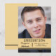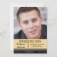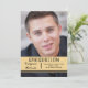 A modern graduation announcement with the word "Graduation" in an intricate pattern. The gold base has two horizontal lines at the bottom.