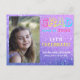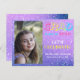 Trendy purple pink glitter colourful 8th grade middle school graduation party invitation postcard with your custom photo and bold typography. ++++++++++++ Easy to personalise with your details and photo on both sides!