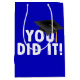 Bright blue "you did it" sign with a black graduation cap on blue background.