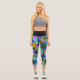 For those like me that aren't afraid of colour. This digital graffiti is jam packed with colour and texture. You have greens, blues, yellow, pink, orange, black, turquoise in a variety of shapes and patterns with a touch of bling. These eye popping capri leggings will make a bold addition to your wardrobe.