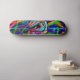 This skateboard design features a graffiti inspired eye staring out from abstract destruction art. A bright and colourful board to get exercise and have fun. Most of all, it is cool and gets a rider there. Adults, teens, kids.
