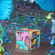 A graffiti inspired design featuring butterflies and colourful street art. Great for theme parties and events all year